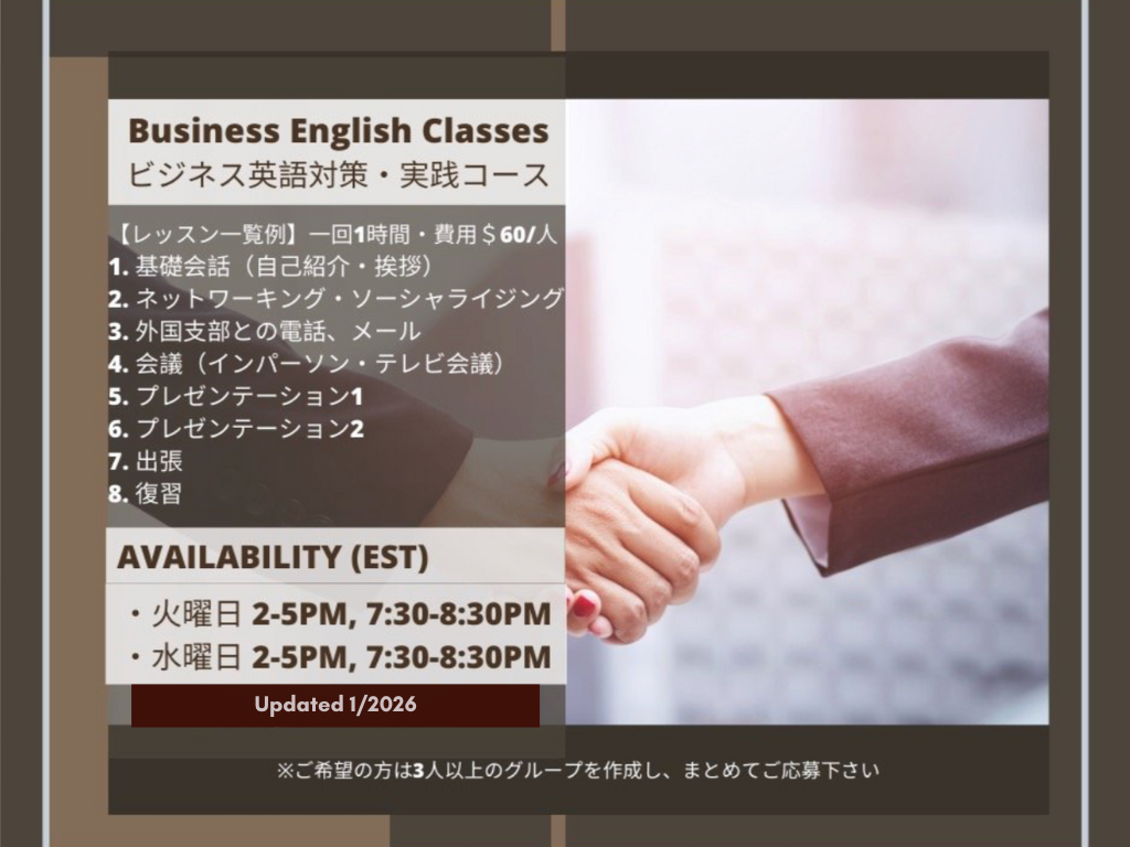 ビジネス英語対策・実践コース(計8回)